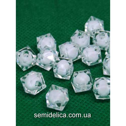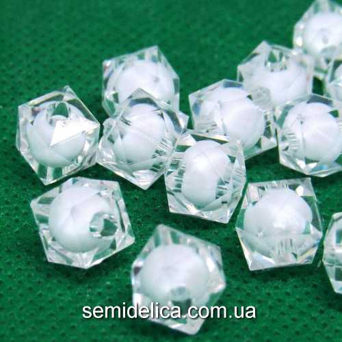 Характеристики товара: Бусины акрил 10 мм Куб, граненый с белой бусиной внутри