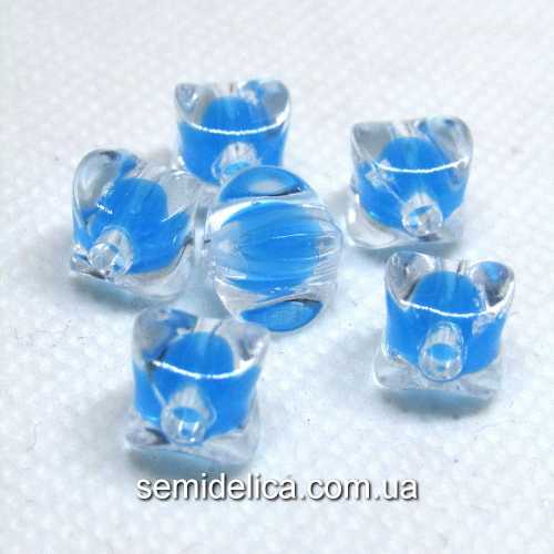 Характеристики товара: Бусины акрил 10 мм Куб, прозрачный с голубой бусиной внутри