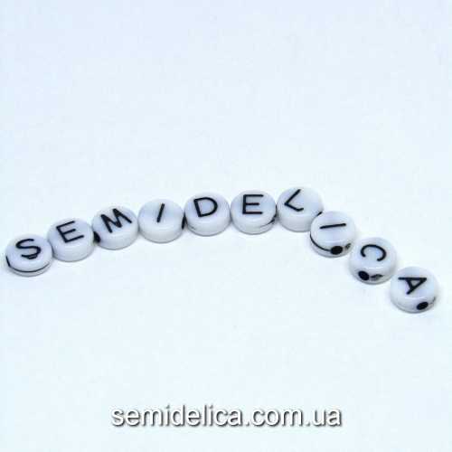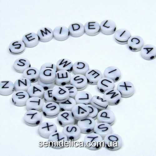 Характеристики товара: Бусины Алфавит 7х3мм, плоские белые с буквами