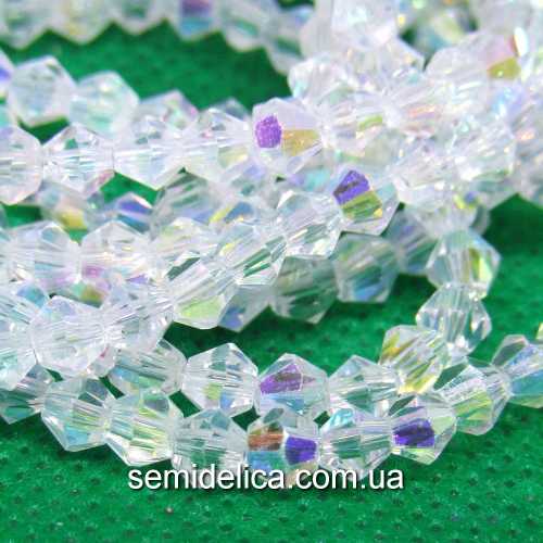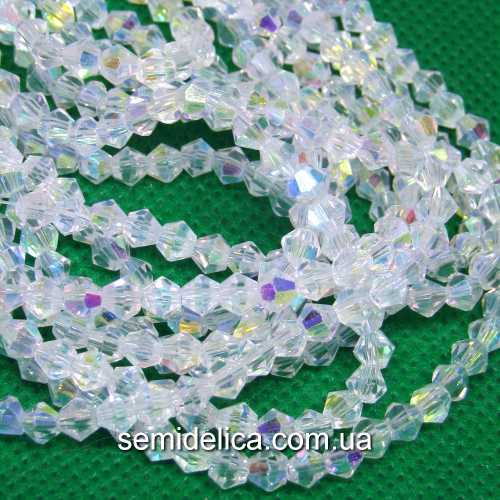 Бусины хрустальные 4мм Биконус, прозрачный с радужным бочком