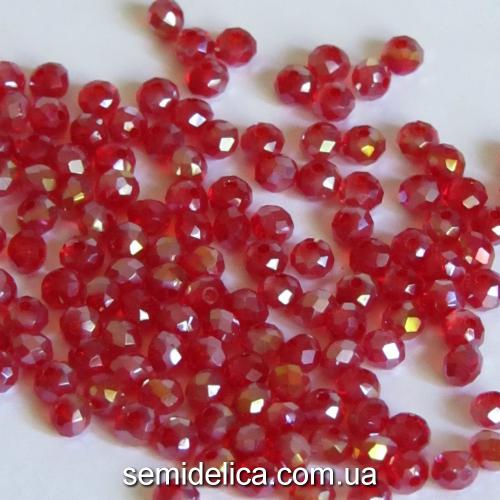 Характеристики товара: Бусины хрустальные 6х4мм Рондель, красный прозрачный с блеском АВ