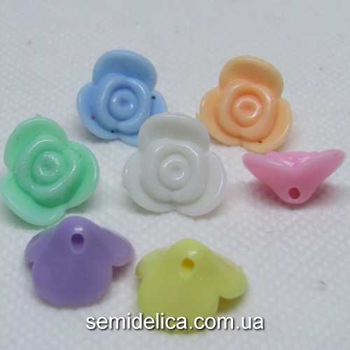 Характеристики товара: Бусины, пуговицы акрил 15х8 мм Роза, цветной микс