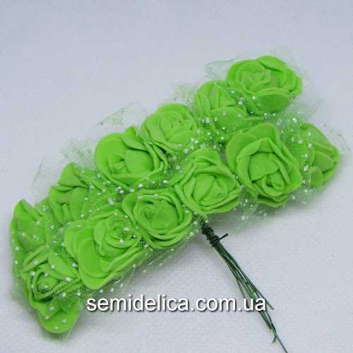 Описание товара: Роза из латекса в фатине 1,5 см, салатовый