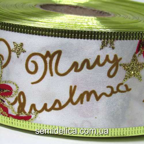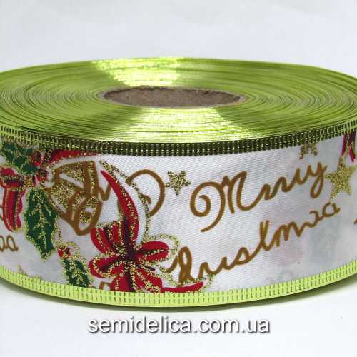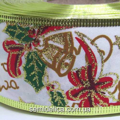 Характеристики товара: Лента атласная с проволочным краем 5 см Колокольчик, айвори с золотом