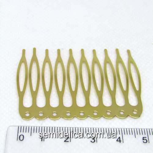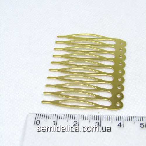Гребешок для волос 5х4 см, на 10 зубчиков. Характеристики товара: Гребень металлический, гребешок для фаты 5х4 см, золото