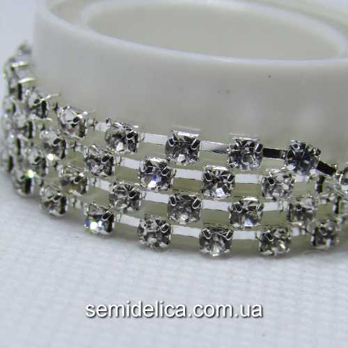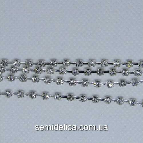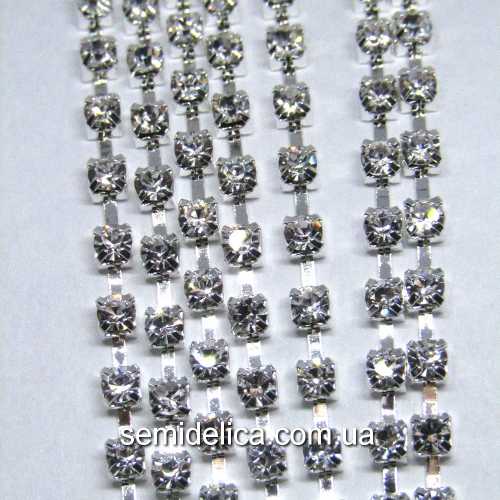 Характеристики товара: Стразовая цепь SS8 2.5мм, серебро с прозрачным камнем
